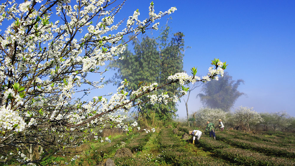 Hoa mận nở trắng thung lũng Nà Ka (Ảnh – Cao Xuân Hoàng)